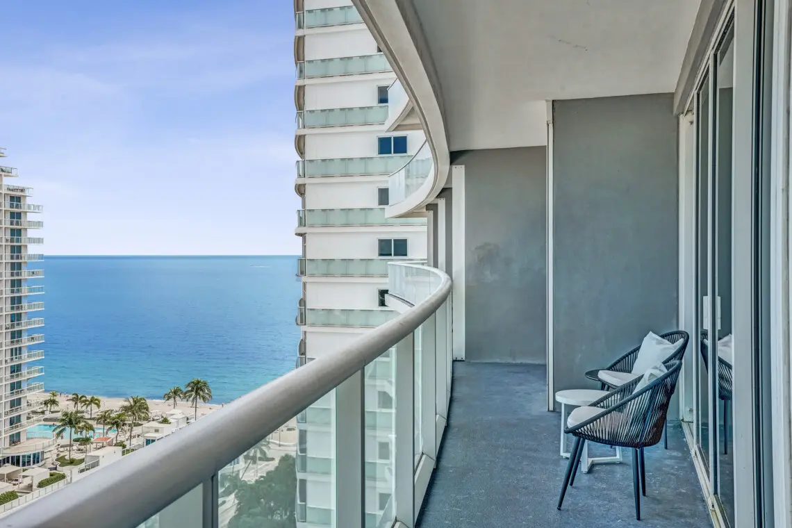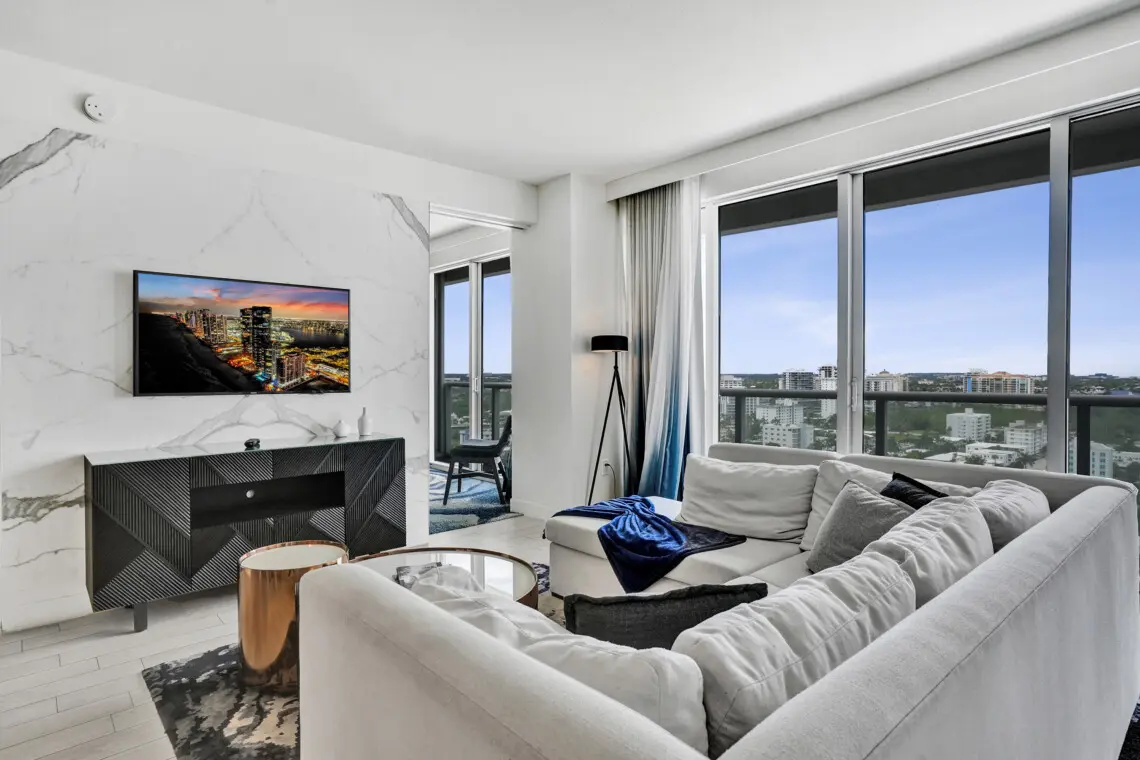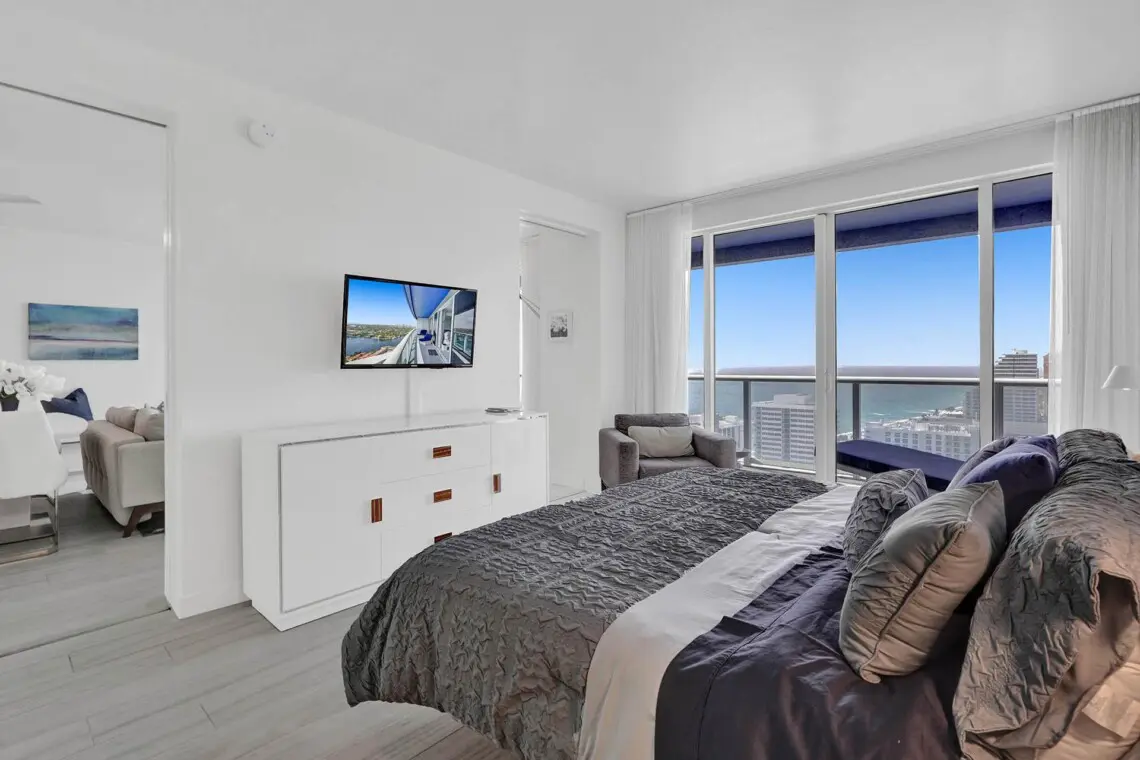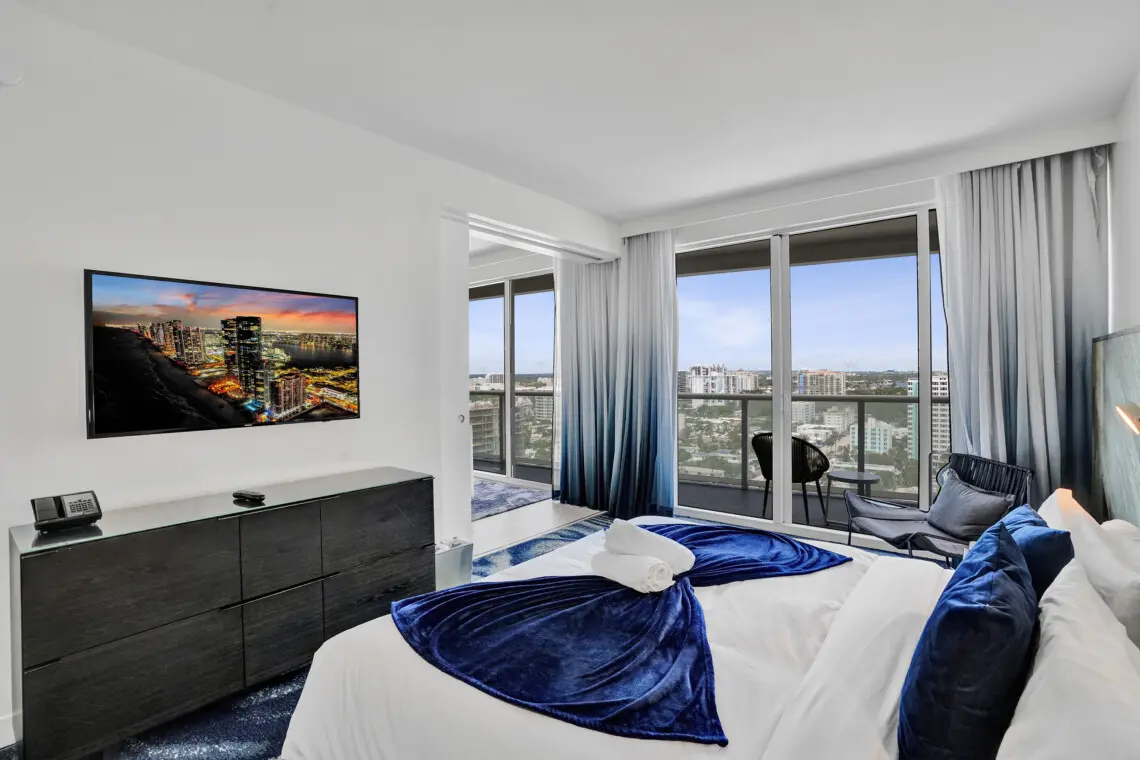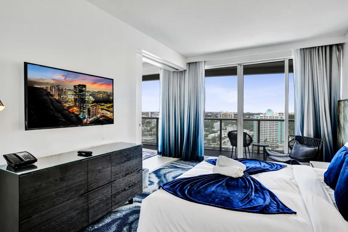 Luxury accommodations at a FLL premier Condo Hotel, steps from the beach w/5 star resort-like amenities, floor to ceiling windows, 9' ceilings