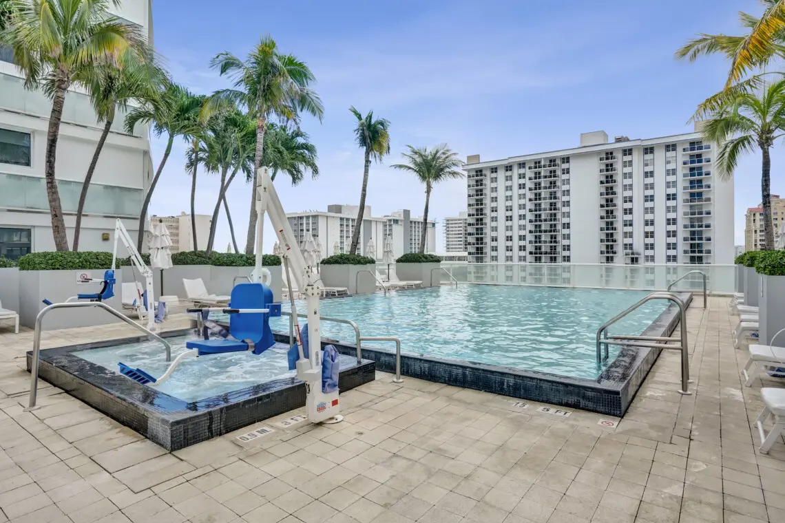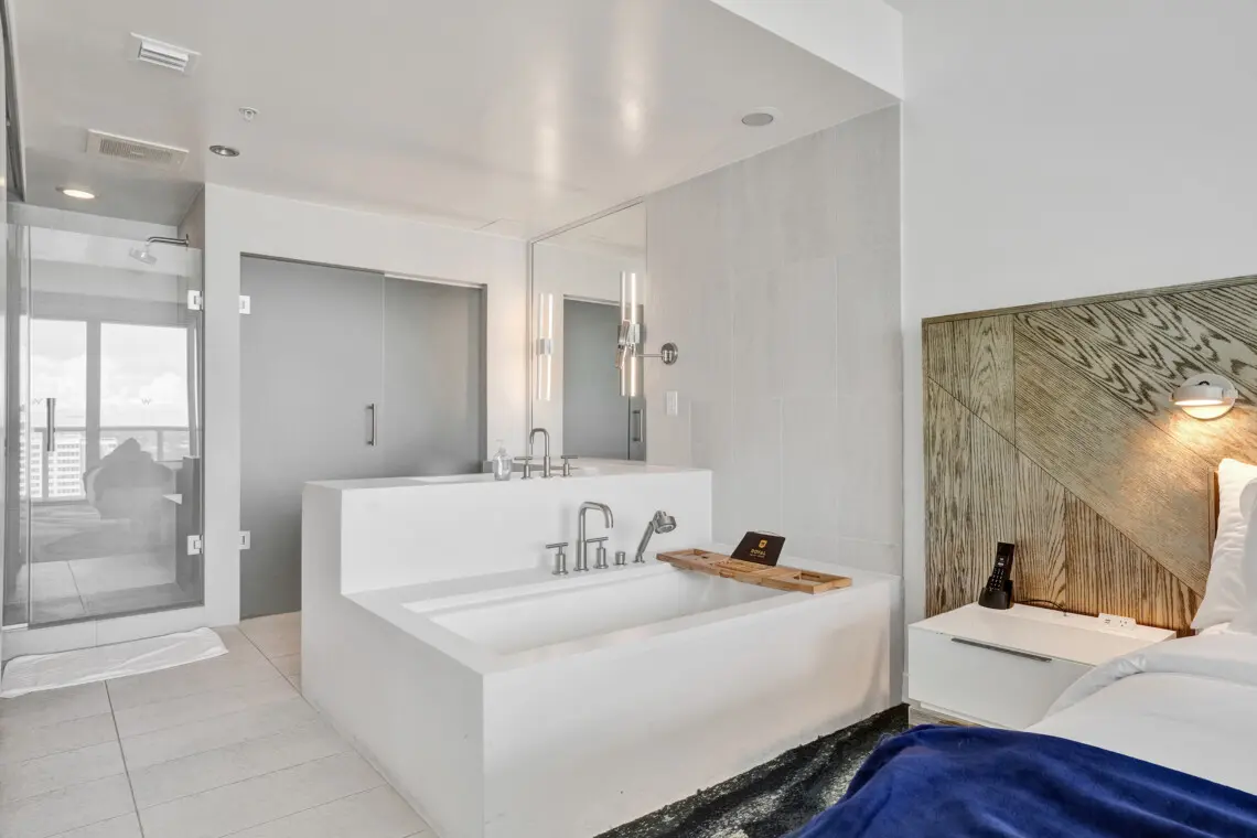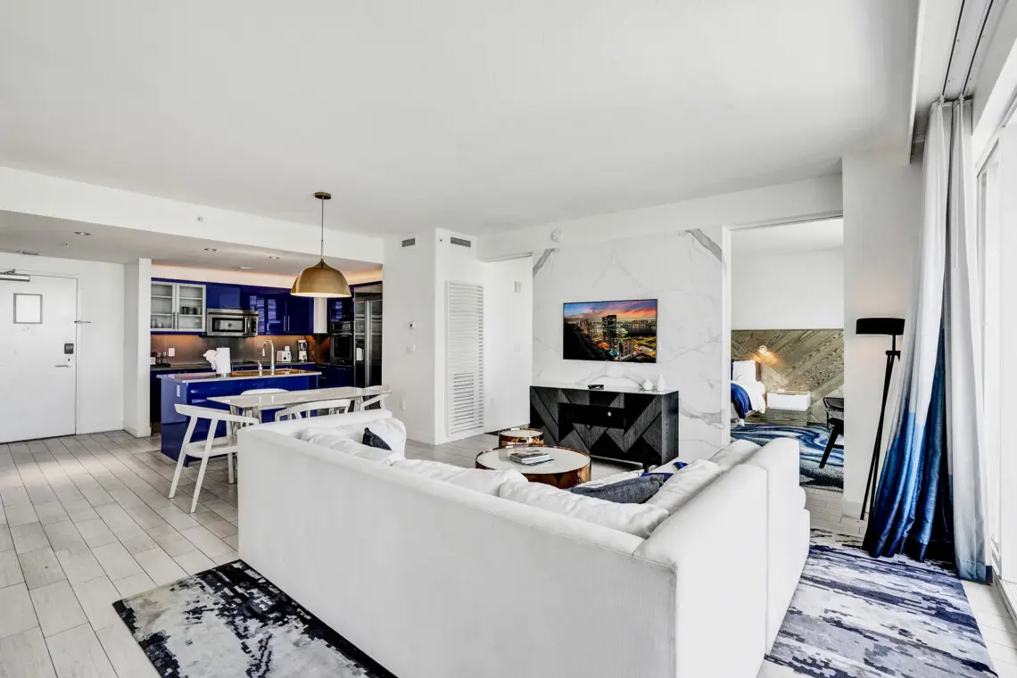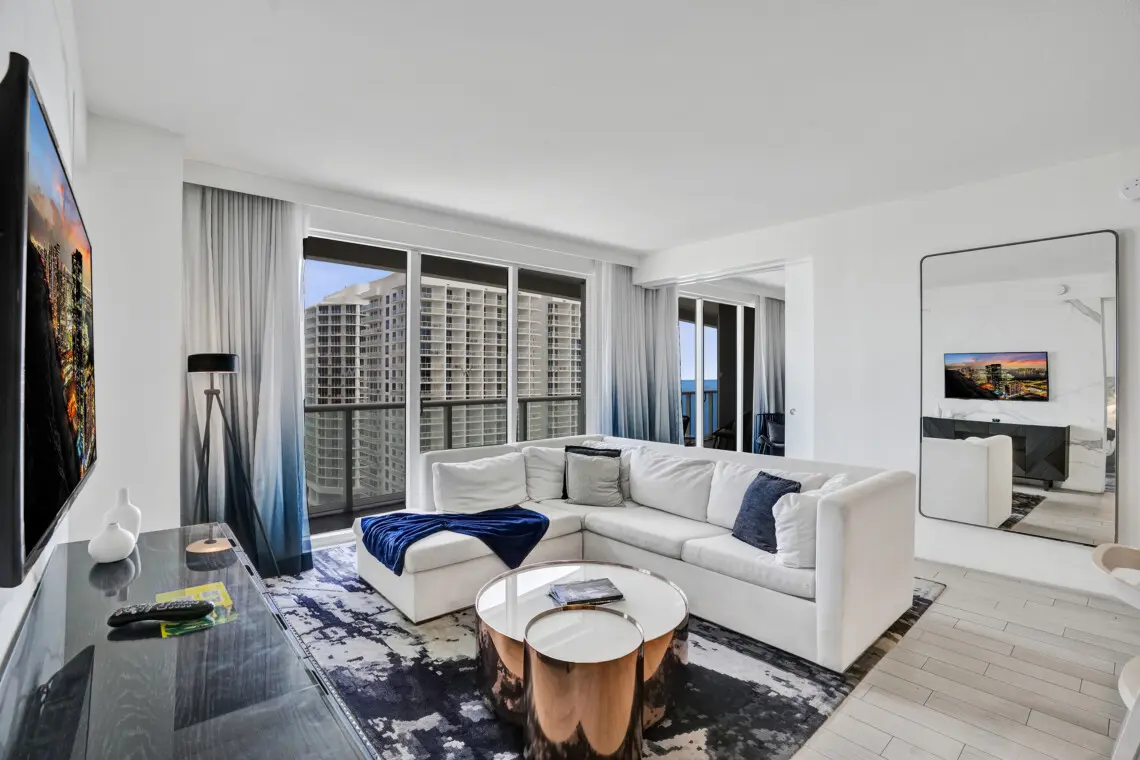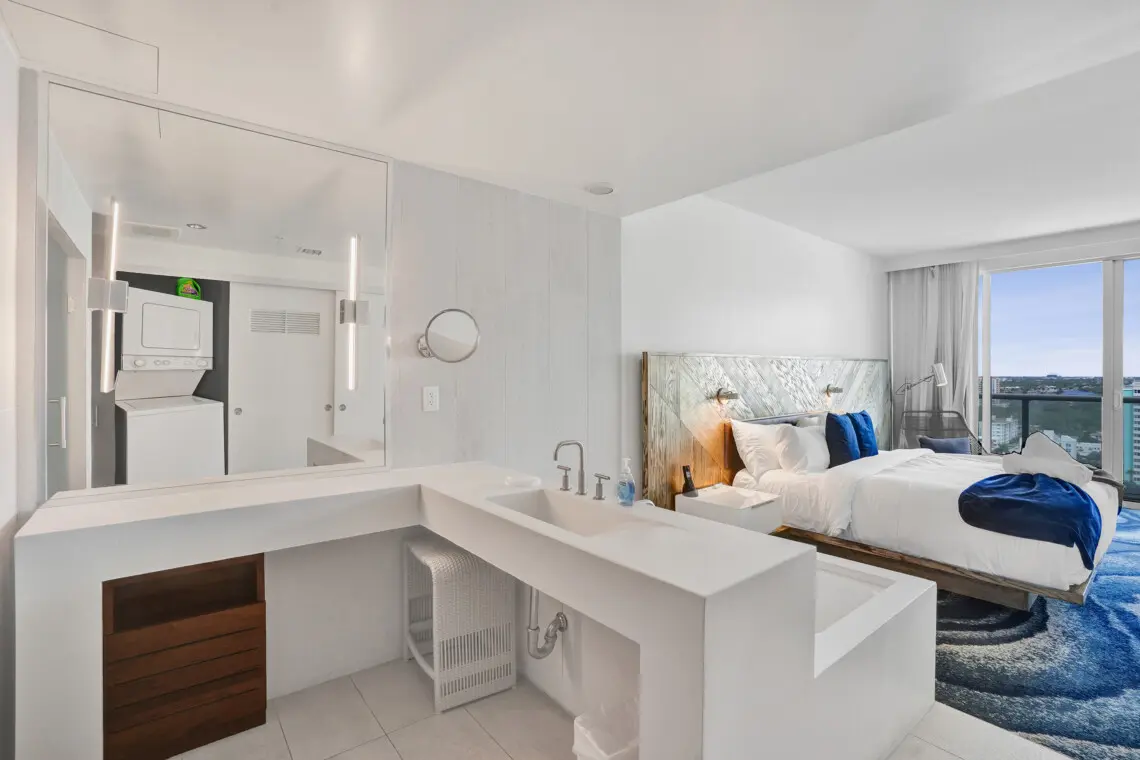 Luxury accommodations at a FLL premier Condo Hotel, steps from the beach w/5 star resort-like amenities, floor to ceiling windows, 9' ceilings